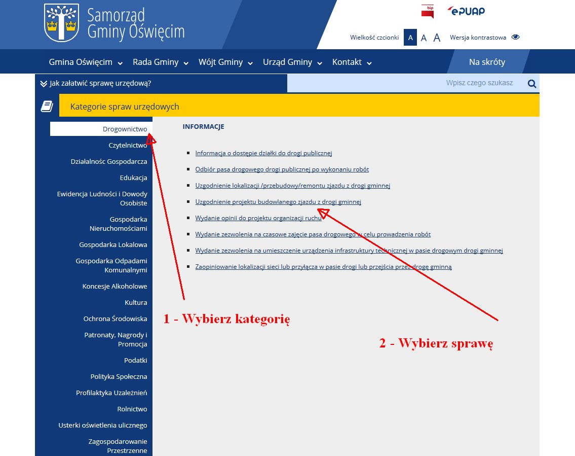 System przekieruje na stronę BIP jednostki, która zajmuje się sprawą - do pełnej informacji, jak załatwić wybraną sprawę.