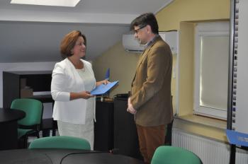 Wójt Albert Bartosz, życząc sukcesów dyrektorom, podkreślił, że jest przekonany, iż wygrali konkursy, ponieważ zasługują na to, żeby pełnić swoje funkcje. Podziękowania, gratulacje i życzenia wszystkim uczestnikom uroczystości złożyła również dyrektor Samorządowego Centrum Usług Wspólnych Halina Musiał.
