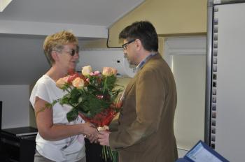 Gimnazjum Gminne w tej miejscowości zostanie w kolejnych latach wygaszone. Piątkowa uroczystość w Urzędzie Gminy była okazją, żeby podziękować za pracę i osiągnięcia Wiesławie Pawłowskiej, dyrektorce Gimnazjum, która od września będzie służyć młodszym koleżankom i kolegom radą, zażywając zasłużonej emerytury.