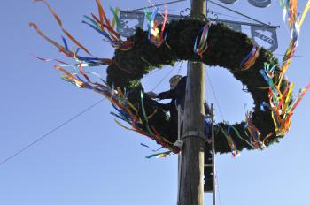 W części oficjalnej burmistrz Axel Passeier oraz wójt Albert Bartosz przywitali mieszkańców Osloss, wśród których znalazło się także wielu naszych rodaków, oraz życzyli im dobrej zabawy. Momentem kulminacyjnym uroczystości było wspólne wciągnięcie na maszt majowego wieńca przez przedstawicieli obu gmin: Melanie Jung i Michaela Schoke po stronie niemieckiej i wójtem Alberta Bartosza, Arkadiusza Kuwika (reprezentującym Miejsko-Gminny Związek OSP) i Pawła Jezierskiego (z Rady Gminy Oświęcim) po stronie polskiej.