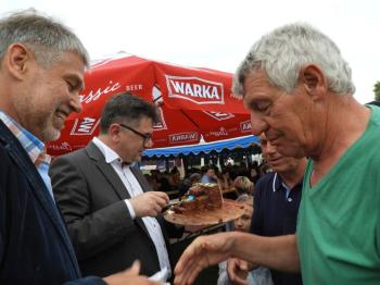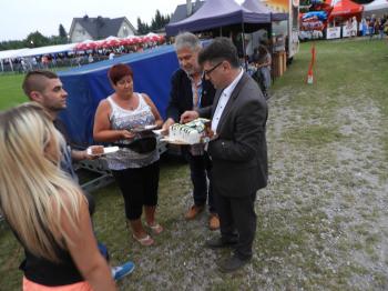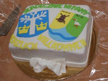 Sobota to już oficjalne obchody Dni Gminy Oświęcim – goście uczestniczyli w otwarciu, podczas którego wójt Bartosz powitał ich na scenie. Zarówno on, jak i burmistrz Passeier w swoich wypowiedziach podkreślali, jak bardzo ważne jest, by utrzymywać bliskie i przyjazne relacje pomiędzy naszymi narodami i że mogą się one opierać właśnie na takich bezpośrednich kontaktach na najniższym szczeblu. Burmistrz Passeier dziękował ze sceny za gościnne przyjęcie i mówił o tym, jak bardzo są dumni stojąc przed mieszkańcami gminy Oświęcim. Ceremonii powitania dopełnił tort z herbami obu gmin, zgodnie podzielony wspólnie przez obu włodarzy, którzy potem rozdawali słodki poczęstunek w tłumie.