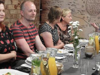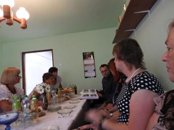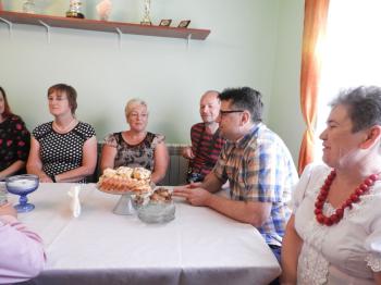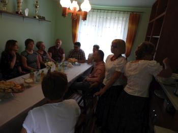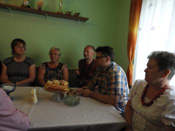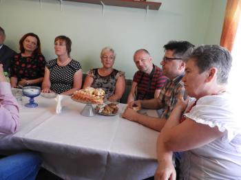 Kolację przygotowały dla naszych gości panie z Koła Gospodyń Wiejskich w Stawach Monowskich. Tradycyjne potrawy i wypieki oraz ich obfitość zrobiły duże wrażenie na naszych gościach – pochwałom nie było końca, a skromność i dobry humor naszych gospodyń przydały im dużo wdzięku. Wieczorny spacer po sołectwie pozwolił pokazać nam, jak spokojnym i gościnnym miejscem do życia jest nasza gmina.