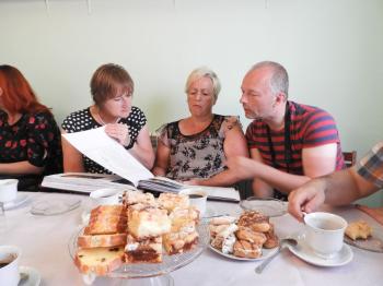 W niedzielny poranek nie pozostawiliśmy naszym przyjaciołom zbyt wiele czasu na odpoczynek. Ostatni wspólny dzień rozpoczął się od poczęstunku w Domu Ludowym w Pławach. Gospodynie – panie z Koła Gospodyń Wiejskich – przyjęły gości wspaniale – własnoręczne wypieki podbiły ich podniebienia i serca. Uśmiechnięte i otwarte, z pomocą tłumaczki pięknie zaprezentowały swoją historię, stroje, ciekawostki, a także zaśpiewały dla swoich gości. Przemiłą wizytę zwieńczyło zaproszenie dla burmistrza Osloss na tegoroczne dożynki i propozycja zostania gospodarzem. Pan Passeier z radością obiecał rozważyć przyjazd.