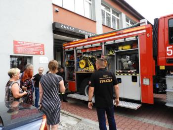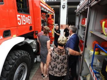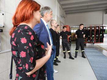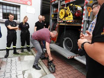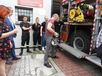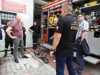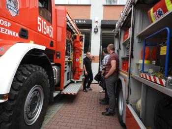 W Brzezince czekały na gości trzy punkty programu. Wizyta w OSP Brzezinka obfitowała w szczegóły techniczne i finansowe – widać było, że druhowie chcą się zaprezentować z jak najlepszej strony, co im się zresztą udało. Sprzęt i wyszkolenie zrobiły odpowiednie wrażenie.