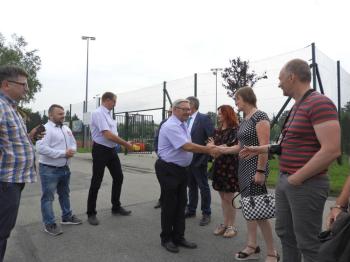 Kobieca Akademia Futbolu „Iskra” to punkt, którego nie mogło zabraknąć w programie wizyty. W Wolfsburgu działa bowiem wysokiej klasy kobieca drużyna piłki nożnej. Sołtys Andrzej Ryszka serdecznie przyjął gości i długo rozmawiał z burmistrzem Passeierem.