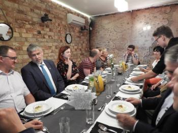 Wizytę zwieńczył obiad w Broszkowicach w towarzystwie zastępców przewodniczącego rady gminy Marii Brombosz i Krzysztofa Harmaty, sołtysów Anny Sporysz, Władysława Zalińskiego i Arkadiusza Kuwika, a także reprezentacji urzędu gminy z wójtem Albertem Bartoszem na czele. W przyjaznej atmosferze przedstawiciele obu stron mogli się lepiej poznać i porozmawiać.
