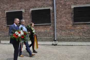 Wizyta w Polsce i w gminie Oświęcim były dla naszych gości okazją do refleksji – część piątku i soboty poświęcili na zwiedzanie Państwowego Muzeum Auschwitz-Birkenau, a także oświęcimskiej synagogi. W samo południe w piątek, w towarzystwie zastępcy wójta Bartłomieja Bąka, złożyli kwiaty przy Ścianie Śmierci.