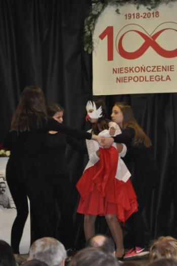 Powitalna piosenka nadała akademii szczególny ton, ponieważ zaśpiewała ją nauczycielka, opiekunka koła wokalnego, w duecie z panią dyrektor. Przemówienia samorządowców wypełniły podziękowania i odwołania do chlubnej przeszłości. Program artystyczny przedstawiony przez młodzież był wyprawą przez burzliwe dzieje, wiodącą przez upadki do szczęśliwego odrodzenia polskiej państwowości.