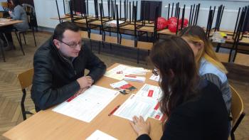 Od samego rana w sobotę wolontariusze Fundacji DKMS czekali na potencjalnych dawców w hali sportowej Szkoły Podstawowej w Rajsku. W ciągu pięciu godzin zarejestrowało się kilkadziesiąt osób – praca z każdą z nich trwała kilka minut i polegała na przeprowadzeniu wstępnego wywiadu medycznego, pobraniu wymazu z błony śluzowej wewnętrznej strony policzka i wypełnieniu formularza z danymi osobowymi.