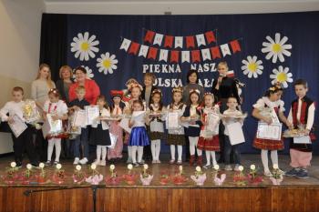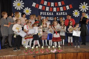 Dzieci z siedmiu przedszkoli prezentowały talenty i wykazywały się wiedzą, uczestnicząc w Gminnym Konkursie Recytatorskim "Piękna nasza Polska cała" zorganizowanym przez Przedszkole Samorządowe w Porębie Wielkiej 27 marca.
