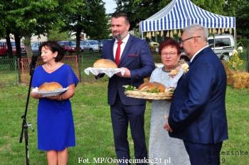 Dożynki zgodnie z tradycją rozpoczęły się mszą świętą, po której miał miejsce przemarsz w korowodzie na teren imprezy, gdzie kontynuowany był rytuał dożynkowy. Najpierw odbyło się powitanie wszystkich obecnych i przemówienia zaproszonych gości, których w miniony weekend w gminie Oświęcim było niemało.  Wójt Gminy Mirosław Smolarek dziękował za trud i pracę włożoną przez organizacje i mieszkańców sołectw w przygotowanie uroczystości. Podkreślał wagę podtrzymywania i kultywowania wspaniałej tradycji dożynek. Następnie miało miejsce oficjalne przekazanie chleba na ręce gospodarzy dożynek, wójta gminy oraz sołtysów, którzy poczęstowali nim uczestników święta. W ramach obchodów miały miejsce także część artystyczna, występy dzieci i młodzieży, uzdolnionych mieszkańców, kół gospodyń wiejskich i zespołów śpiewaczych. Na tych fantastycznych prezentacjach lokalnej kultury kończyła się oficjalna część dożynek, po której tradycyjnie nadszedł czas na festyn i zabawę przy muzyce.