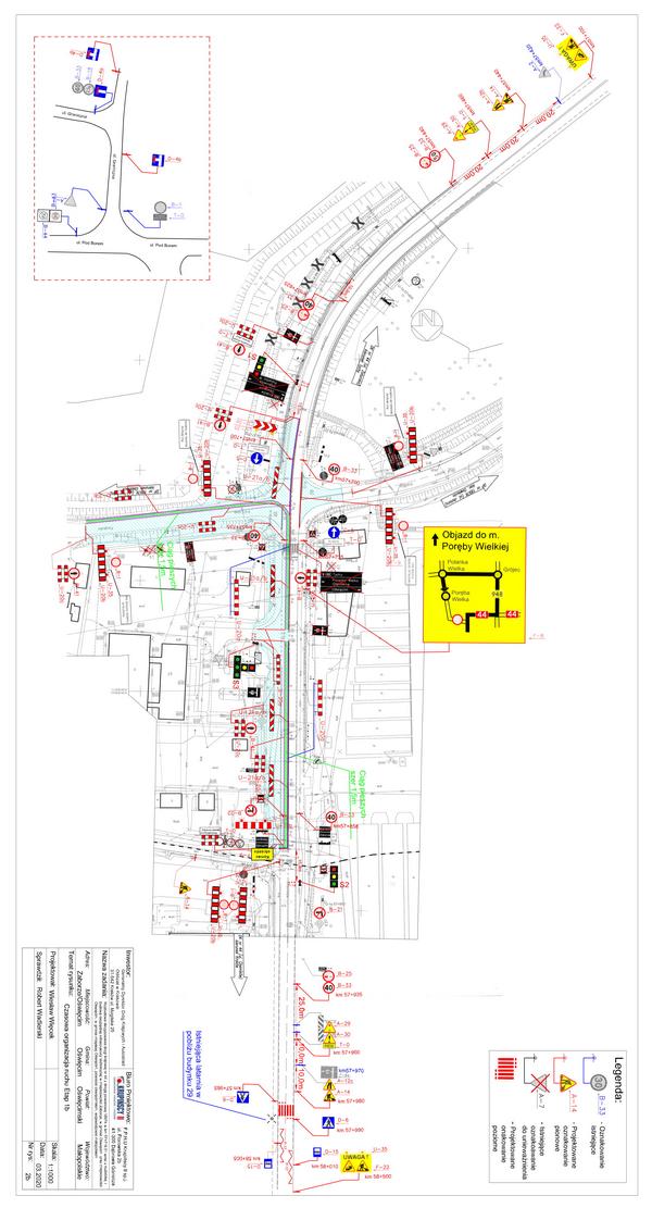 Objazd do miejscowości Poręba Wielka odbywał się będzie drogą wojewódzką DW 948, a następnie przez miejscowość Grojec. Objazd do ul. Jezioro odbywał się będzie ul. Grojecką.