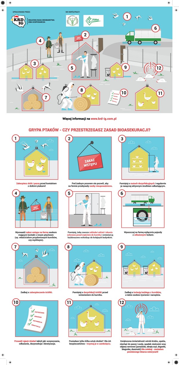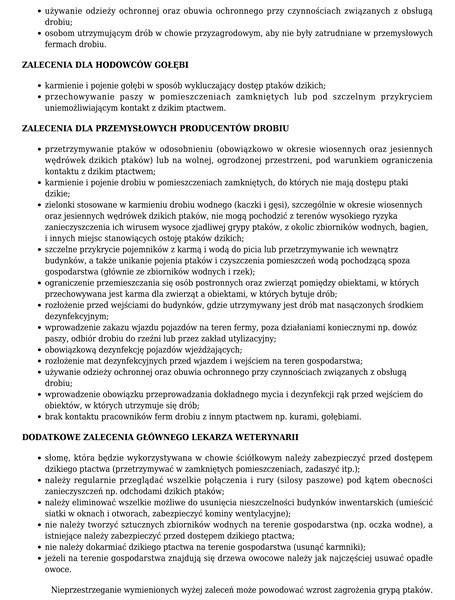W ostatnich dniach wystąpiło 6 ognisk w gospodarstwach m.in. w Niemczech i Czechach oraz 76 u ptaków dzikich również m.in. w Niemczech blisko granicy z Polską. Z uwagi na trwającą jesienną migrację ptaków dzikich oraz bliskie sąsiedztwo kilkunastu ognisk w Niemczech istnieje realne zagrożenie rozprzestrzenienia się wysoce zjadliwej grypy ptaków (HPAI) na dalsze regiony Europy, w tym do Polski.