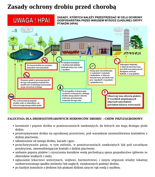 W związku z tym Powiatowy Lekarz Weterynarii w Oświęcimiu przypomina zasady ochrony drobiu przed chorobą oraz zasady bioasekuracji.