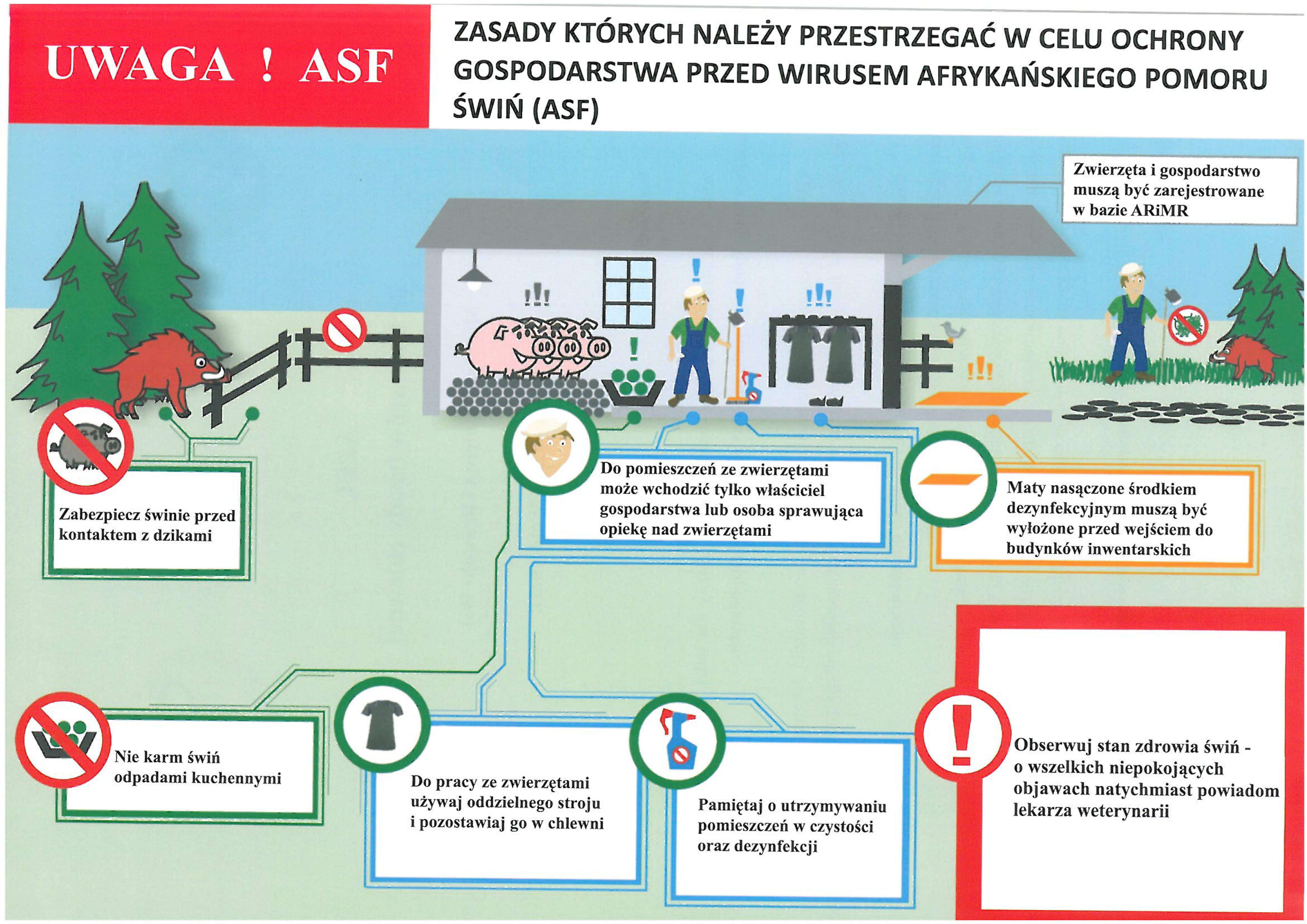 ASF, czyli afrykański pomór świń, nie jest groźny dla ludzi, ale jest bardzo szkodliwy dla gospodarki i niebezpieczny dla Waszych gospodarstw.