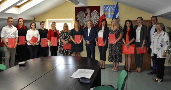 Dwanaścioro nauczycieli z przedszkoli i szkół prowadzonych przez gminę Oświęcim otrzymało z rąk wójta Mirosława Smolarka akty nadania stopnia nauczyciela mianowanego.