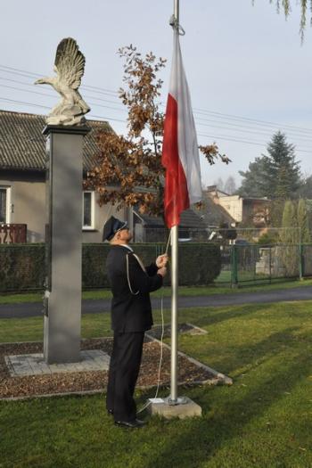 Uczestnicy zgromadzili się przy pomniku Orzeł Niepodległości, gdzie w asyście pocztów sztandarowych i przy dźwiękach Mazurka Dąbrowskiego biało-czerwona flaga została wciągnięta na maszt. Następnie wójt Mirosław Smolarek podkreślił w swoim wystąpieniu, że odzyskanie Niepodległości 104 lata temu było możliwe dzięki współpracy obywateli Rzeczypospolitej wielu narodowości i wyznań.