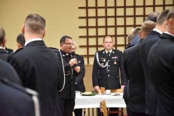 Po części oficjalnej przyszedł czas na modlitwę, wspólne śpiewanie kolęd oraz połamanie się opłatkiem, składając sobie nawzajem życzenia. W posiedzeniu uczestniczyli prezesi i naczelnicy jednostek zrzeszonych w Oddziale, członkowie Zarządu i Komisji Rewizyjnej oraz Młodzieżowych Drużyn Pożarniczych.