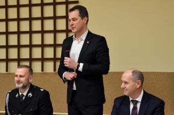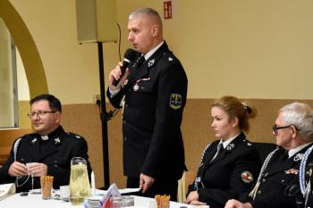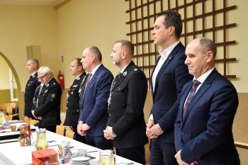 Po przywitaniu gości przez druha Wojciech Chrzana świąteczne i noworoczne życzenia złożyli druhnom i druhom samorządowcy: wójt Mirosław Smolarek, przewodnicząca Rady Gminy Oświęcim Bernardyna Bryzek, starosta powiatu oświęcimskiego Andrzej Skrzypiński, wiceprezydent Oświęcimia Krzysztof Kania oraz wójt Polanki Wielkiej Grzegorz Gałgan.