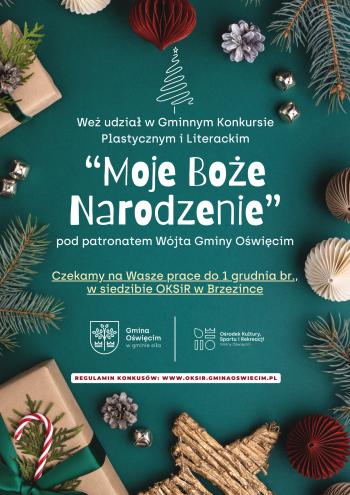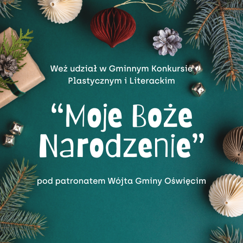 Czas Bożego Narodzenia zbliża się wielkimi krokami, w związku z tym zachęcamy Was do udziału w Gminnym Konkursie Plastycznym i Literackim "Moje Boże Narodzenie" pod patronatem Wójta Gminy Oświęcim.