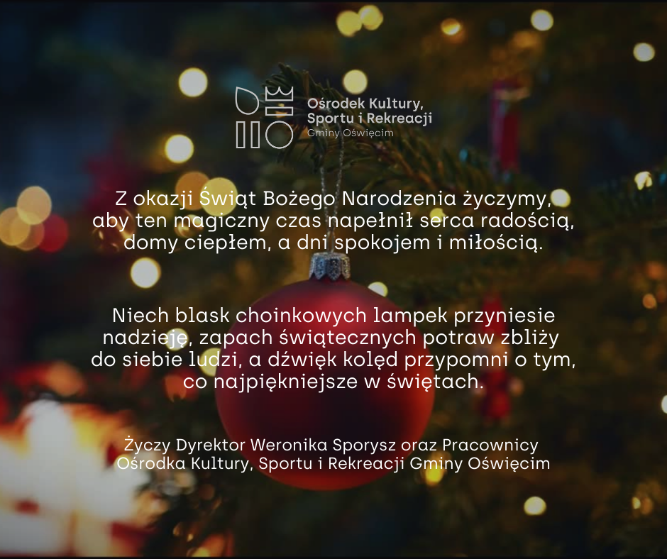 Ośrodek Kultury Sportu i Rekreacji Gminy Oświęcim pragnie złożyć serdeczne życzenia z okazji Świąt Bożego Narodzenia!