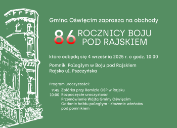 Zapraszamy uczestników na godz. 9:45 pod Remizę OSP przy ul. Św. Floriana 3 w Rajsku, skąd wyruszymy orszakiem pod pomnik "Poległym w 1939 r."