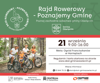 Wyrusz z nami w rowerową wyprawę i odkryj zachodnie zakątki Gminy Oświęcim, przemierzając trasę przez Brzezinkę, Babice, Broszkowice, Rajsko, Pławy i Harmęże.