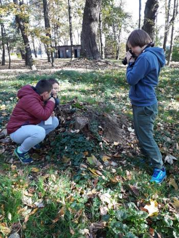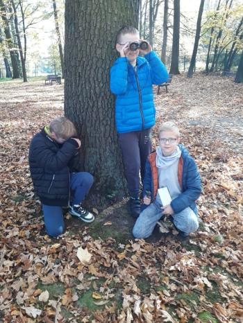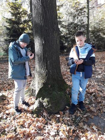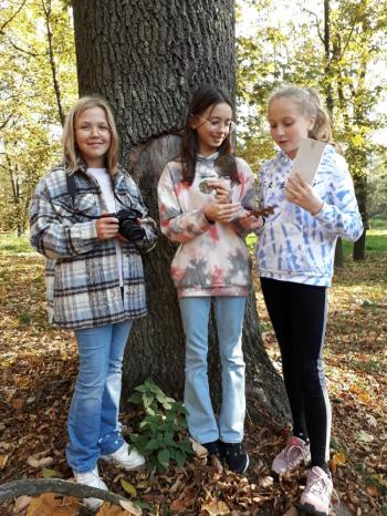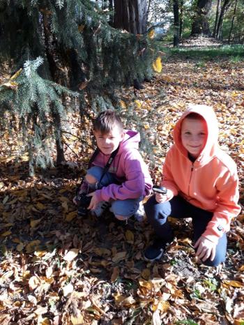Klasa IVa, zainspirowana niezwykłymi lekcjami w Akademii pana Kleksa, postanowiła także sprawdzić się w poszukiwaniu skarbów. We wtorek 17 października uzbrojeni w lornetki, lupy i aparat fotograficzny uczniowie ruszyli w przyrodę. I choć nie dowodził pan Ambroży, tylko pani Agata, podjęli wyzwanie z prawdziwym entuzjazmem. Zadanie było proste: pomyszkować w terenie, znaleźć interesujący drobiazg i przekonać wszystkich, że to właśnie najprawdziwszy skarb. W końcu- od czego wyobraźnia! Ta, rzeczywiście, nie zawiodła. Mali odkrywcy znaleźli więc: kasztany z Arizony, sówki nierozłączki, kasztanowy hotel, kasztaniaki pod palmą, księżycowy kamień, i wiele innych cennych okazów.