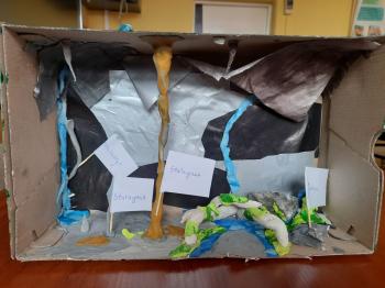 Inną formą aktywności podczas geografii było stworzenie modelu jaskini krasowej ukazującej jej wnętrze z formami krasowymi.