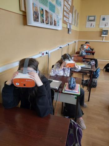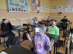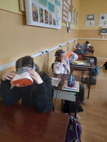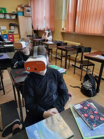 Na zajęciach korzystali z nowoczesnej technologii, czyli okularów VR zakupionych w ramach programu #LaboratoriaPrzyszłości, gdzie rozpoznawali poznane formy terenu i rodzaj krajobrazu na zdjęciach.