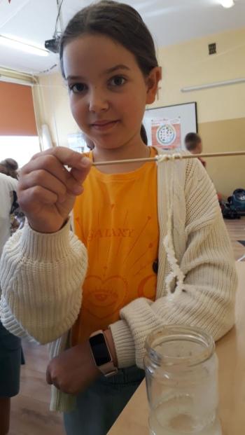 Badali, które substancje rozpuszczają sie w wodzie, a które układają się w kolorowe warstwy. Dowiedzieli się, co należy zrobić, by wyhodować kryształki soli. Prowadzili obserwację założonej hodowli.